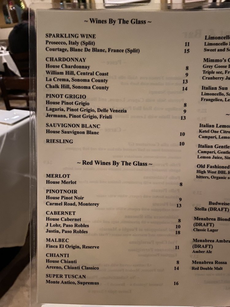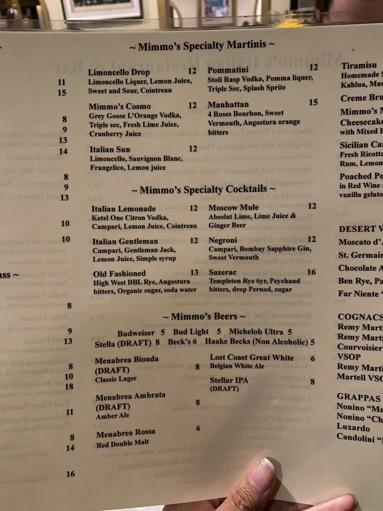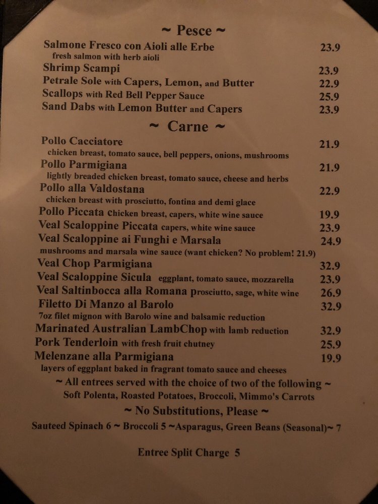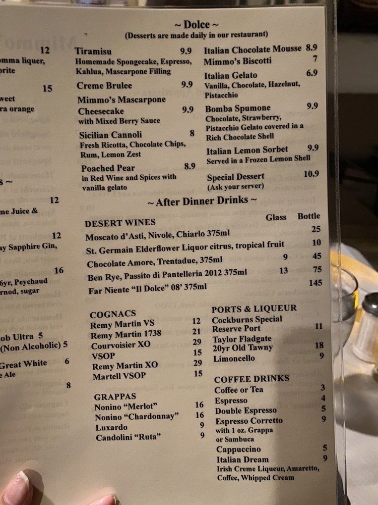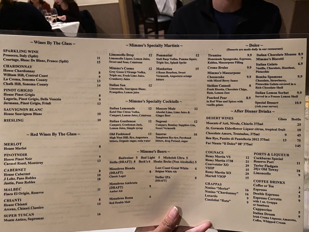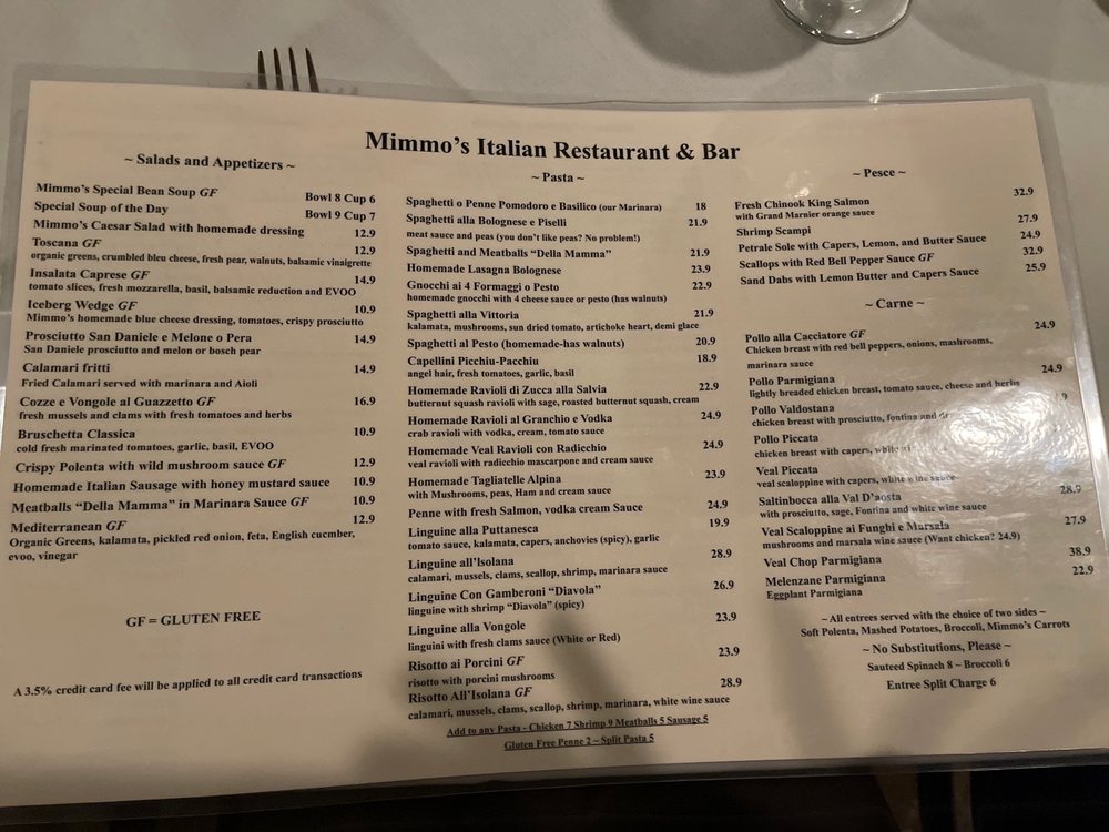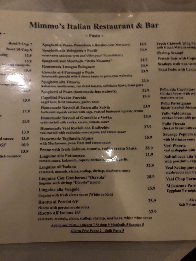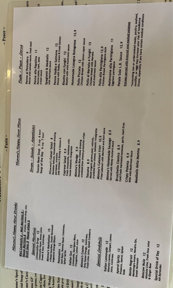 Introducing the menu at Mimmo’s Italian Restaurant & Bar is a delightful experience. From traditional Tuscan Bean Soup to homemade Gnocchi with 4 cheese sauce, each dish is carefully crafted to perfection. The fresh Fish of the Day and Shrimp Scampi are must-tries for seafood lovers. The ambiance is casual yet intimate, perfect for a dinner with friends or a romantic date night. Customers rave about the warm bread served with olive oil tapenade, the creamy Mushroom sauce on the ravioli, and the delectable Caesar salad. With a variety of options including vegan dishes and happy hour specials, Mimmo’s caters to a diverse range of preferences. The attentive service, inviting atmosphere, and exceptional quality of dishes make dining at Mimmo’s a memorable and satisfying experience.